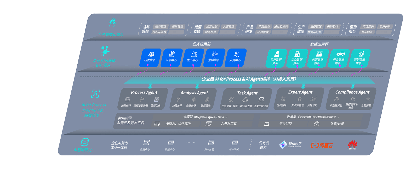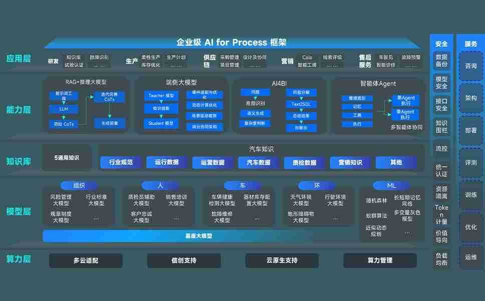 端到端的一站式AI工作空间深度融合了从企业战略规划到日常经营的全流程业务板块,,,定向解决车企内部领域多、、、部门多、、、、链条长、、、场景碎片化等难题,,,支持车企快速构建以AI为核心的生产力写作体系,,,,实现任务执行与AI能力的无缝集成与交互